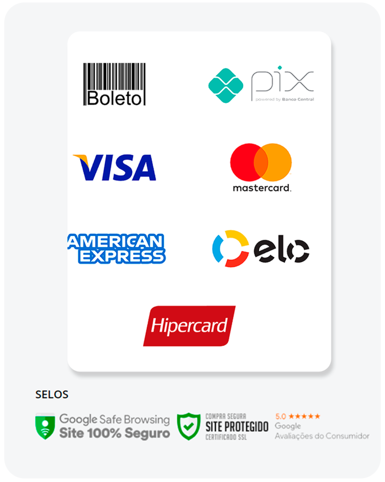 Sim! Os pagamentos são processados pela plataforma Mercado Pago, que aceita todas as bandeiras de cartão de crédito, boleto bancário e outras formas de pagamento.