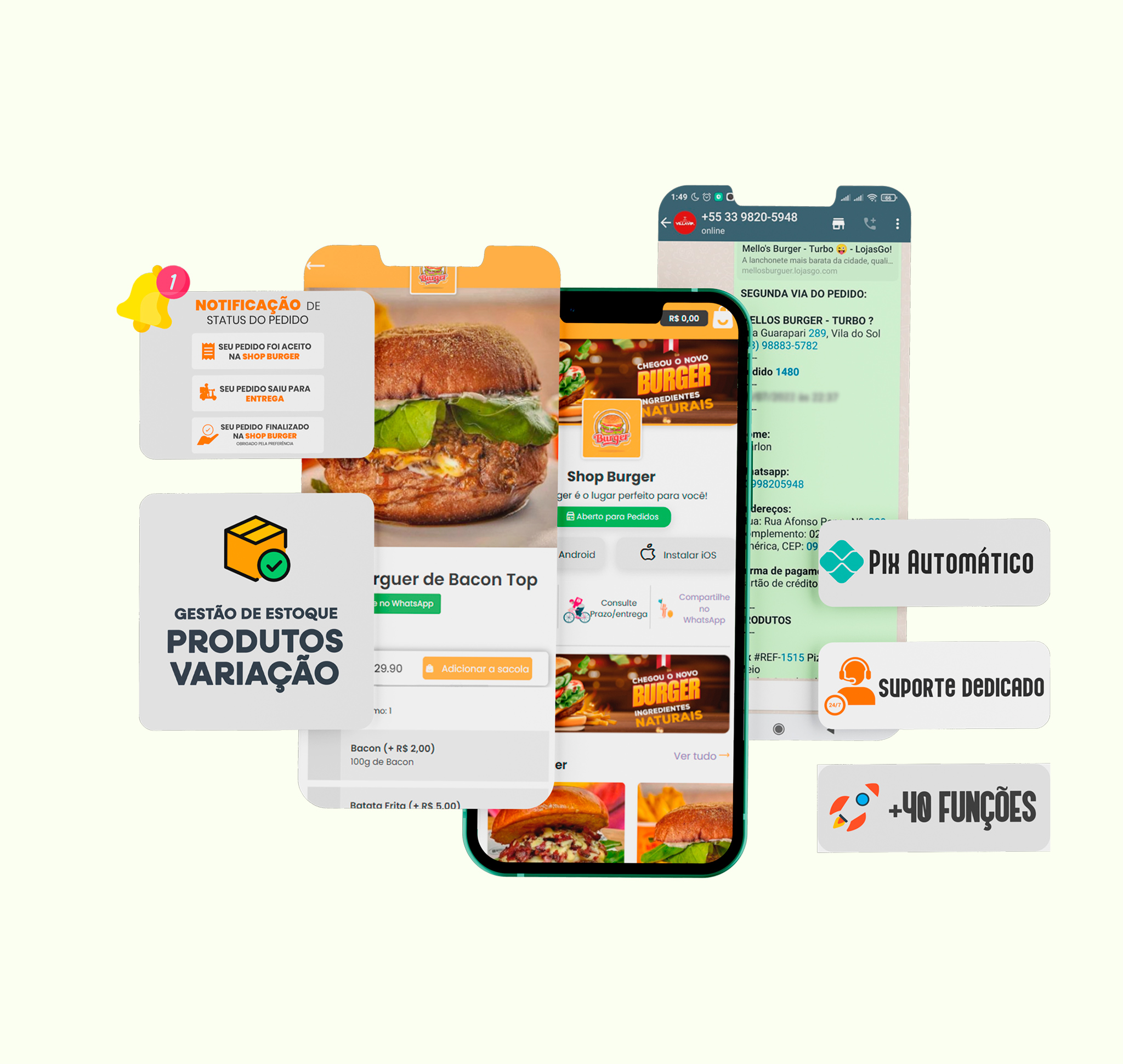 - Receba pedidos no WhatsApp