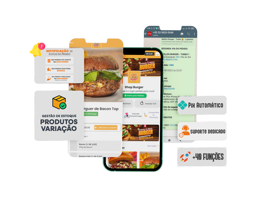 Seus pedidos serão enviados para o WhatsApp do seu negócio. Os pedidos chegam de forma organizada e pronto para impressão. Oferecemos totalmente grátis um painel de recebimento de pedidos online que esta dentro da área do cliente.